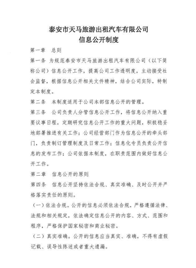 泰安市天馬旅游出租汽車(chē)有限公司信息公開(kāi)制度